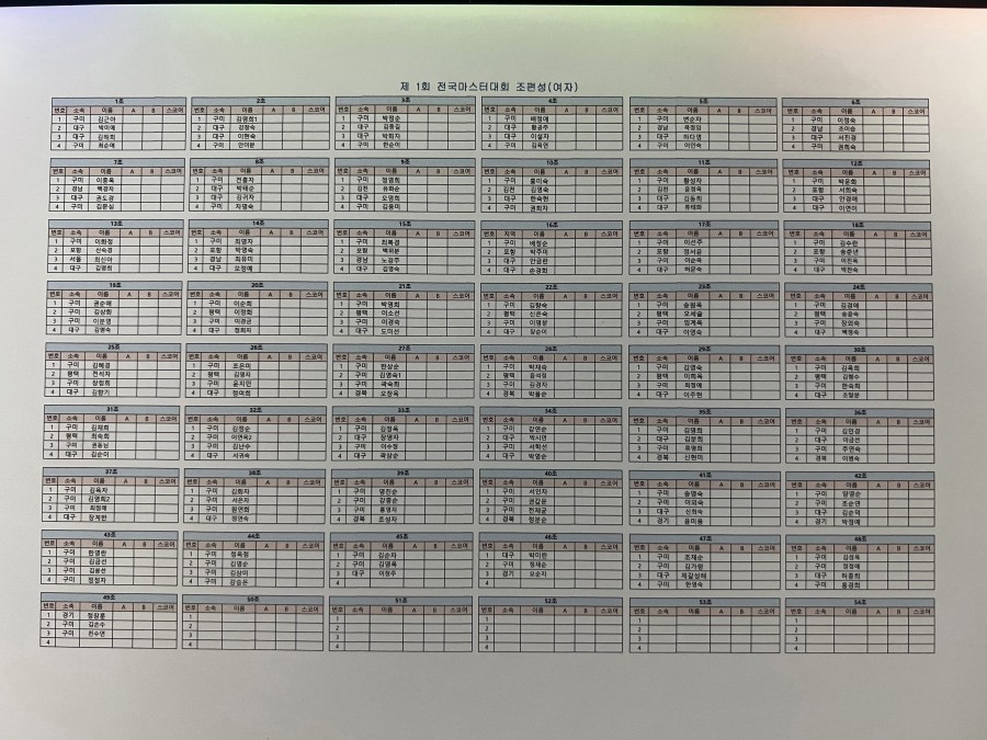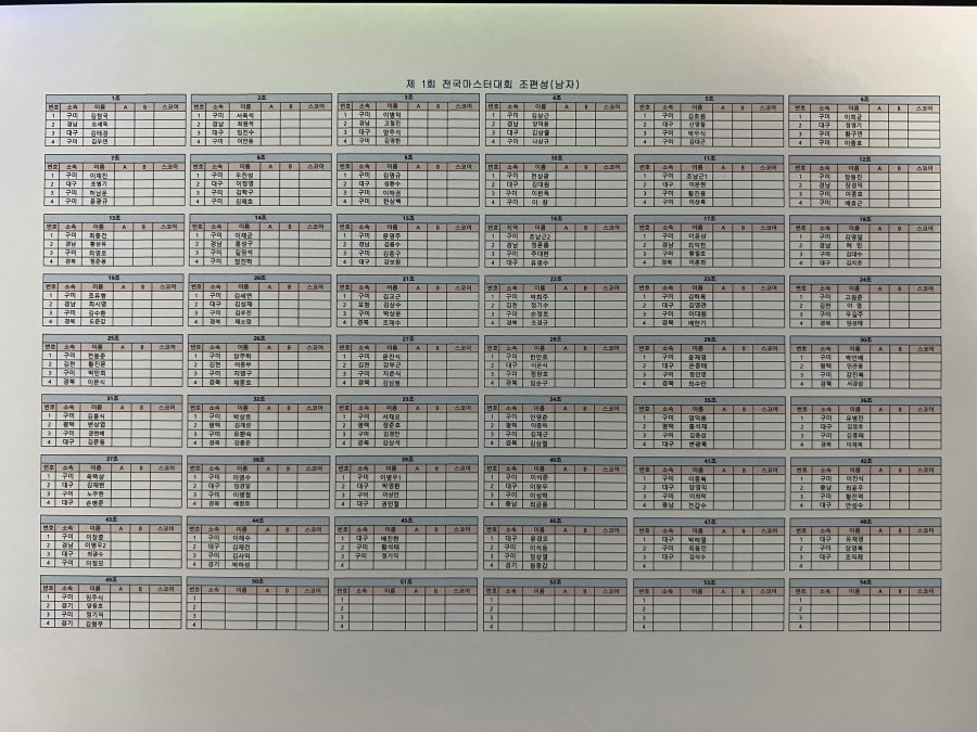 공지사항 제1회 마스터즈 대회 조편성입니다. 작성자 : 관리자 작성일 : 23-05-17 12:09 조회수 : 3,257회 안녕하세요이번 마스터즈대회 조편성입니다. 다음글 2023대한노인체육회 임시총회 23.05.08 이전글 제1회 마스터즈 대회순위입니다. 23.05.22 목록