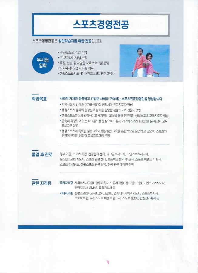공지사항 2024 대구한의대 스포츠복지경영 신입생수시모집 작성자 : 관리자 작성일 : 23-08-11 13:59 조회수 : 3,370회 1 다음글 9/10 전국파크골프노인체육대회 진행순서 23.07.24 이전글 제1회노인체육파크골프대회조편성표 23.09.07 목록
