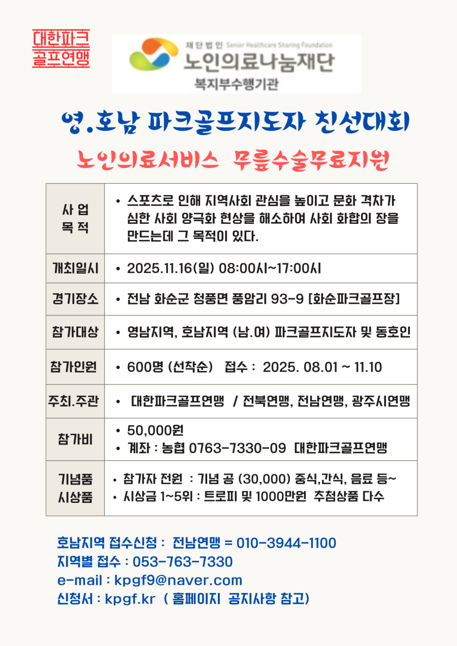 공지사항 2025 영호남파크골프지도자친선대회 작성자 : 최고관리자 작성일 : 25-07-21 16:43 조회수 : 1,654회 1 다음글 연맹 2025년 하반기 전국대회 일정 25.07.01 이전글 생활스포츠2급지도사연수교육지정단체 25.08.12 목록