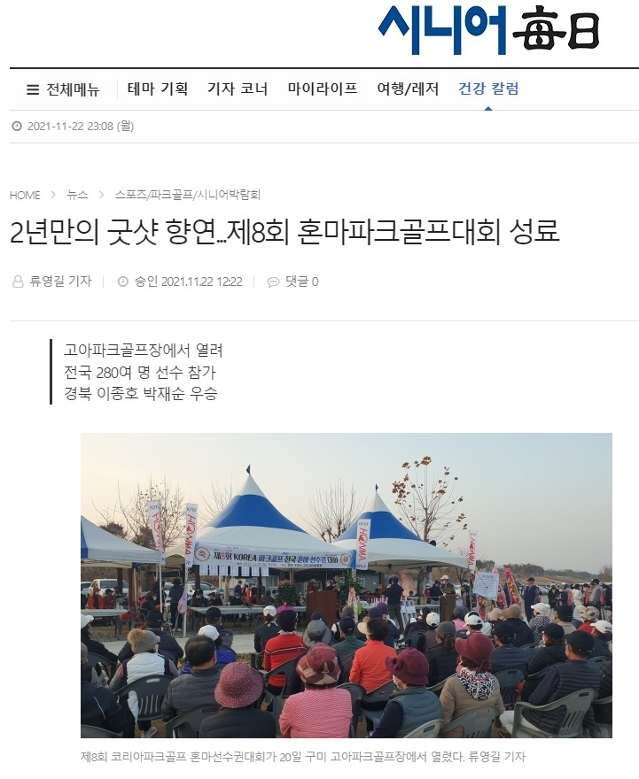 뉴스보도 제8회 KOREA파크골프혼마선수권대회 작성자 : 관리자 작성일 : 21-11-23 02:07 조회수 : 1,214회 다음글 시니어신문 21.05.23 이전글 대구시 달서새마을금고 파크골프이사장배 21.11.23 목록