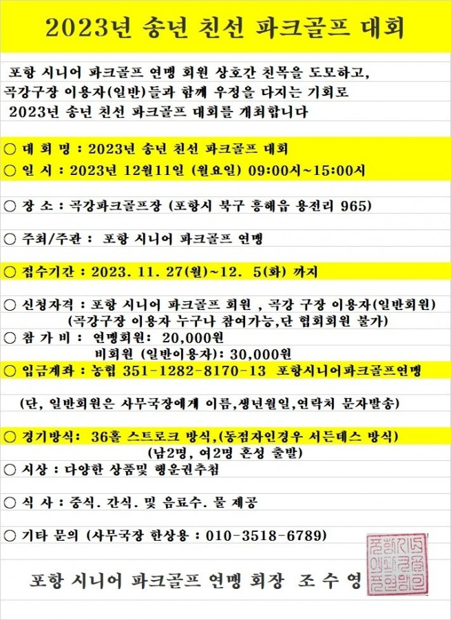 전국연맹소식 포항사무실개소식및친선경기 작성자 : 관리자 작성일 : 23-12-09 10:19 조회수 : 1,876회 ㅣ 다음글 파크골프교실 23.12.08 이전글 24,3,15국제파크골프한일교류대회 24.03.20 목록