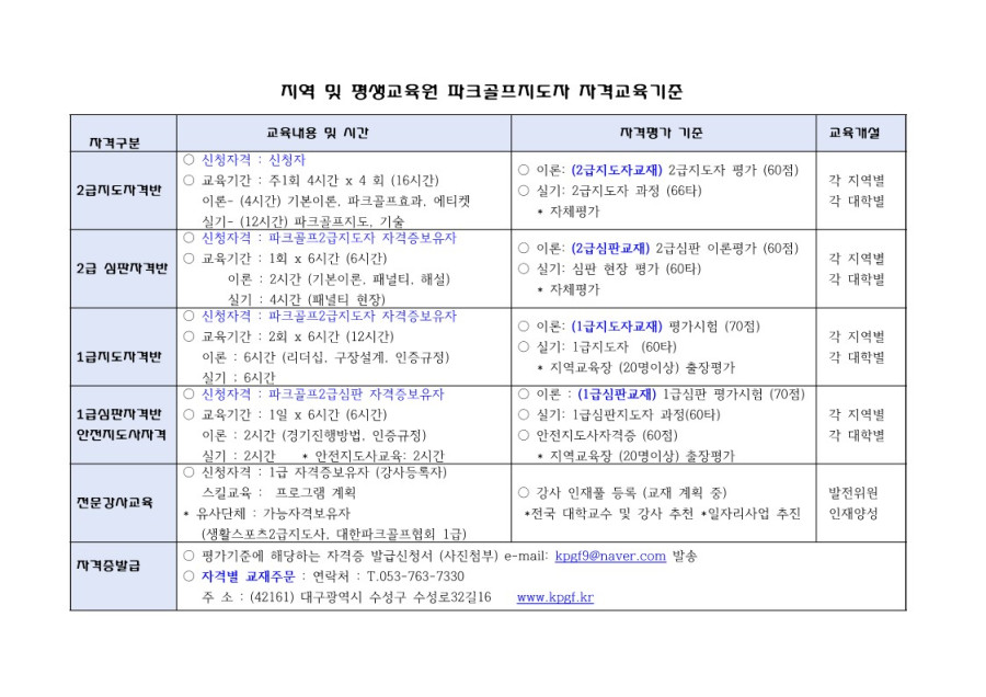 지도자자격정보 연맹파크골프교육기준 작성자 : 최고관리자 작성일 : 25-09-05 02:17 조회수 : 618회 1 다음글 파크골프심판요령 25.07.11 이전글 파크골프2급지도자교육 커리큘럼 25.10.13 목록
